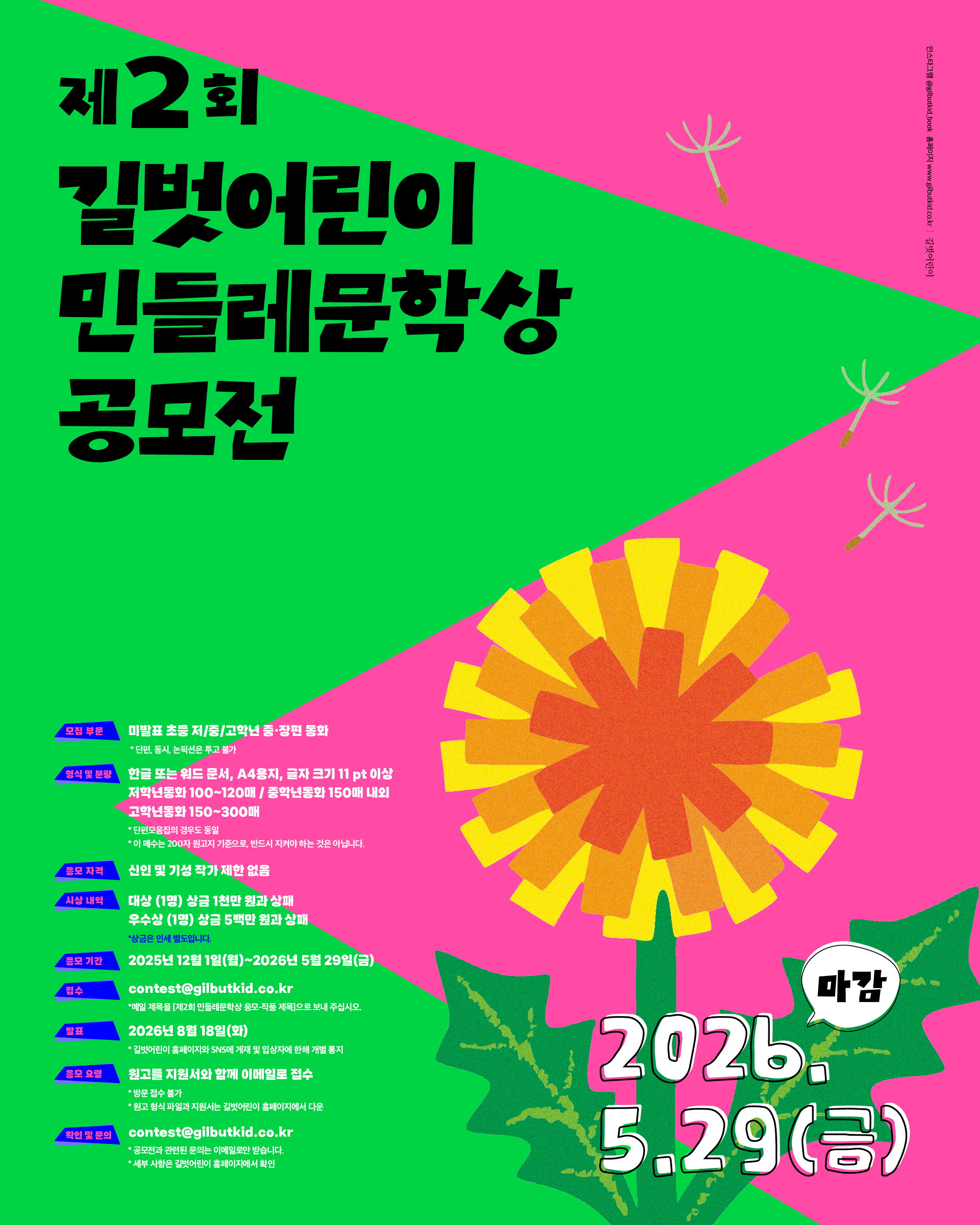 - 응모 부문: 초등 저·중·고학년 창작 동화